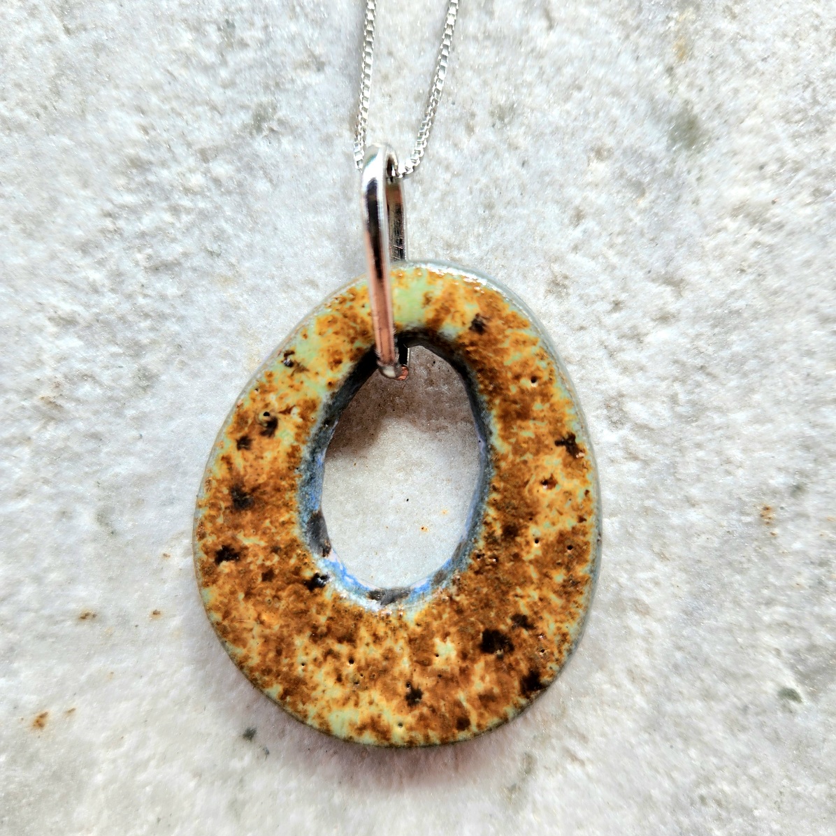 Colar de cerâmica feito à mão e esmaltado com cores únicas que não sairão jamais.