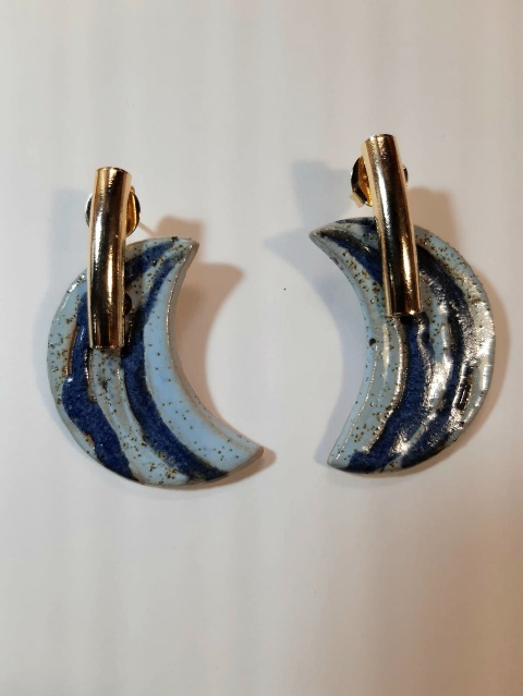 Brincos luas com listras azuis.