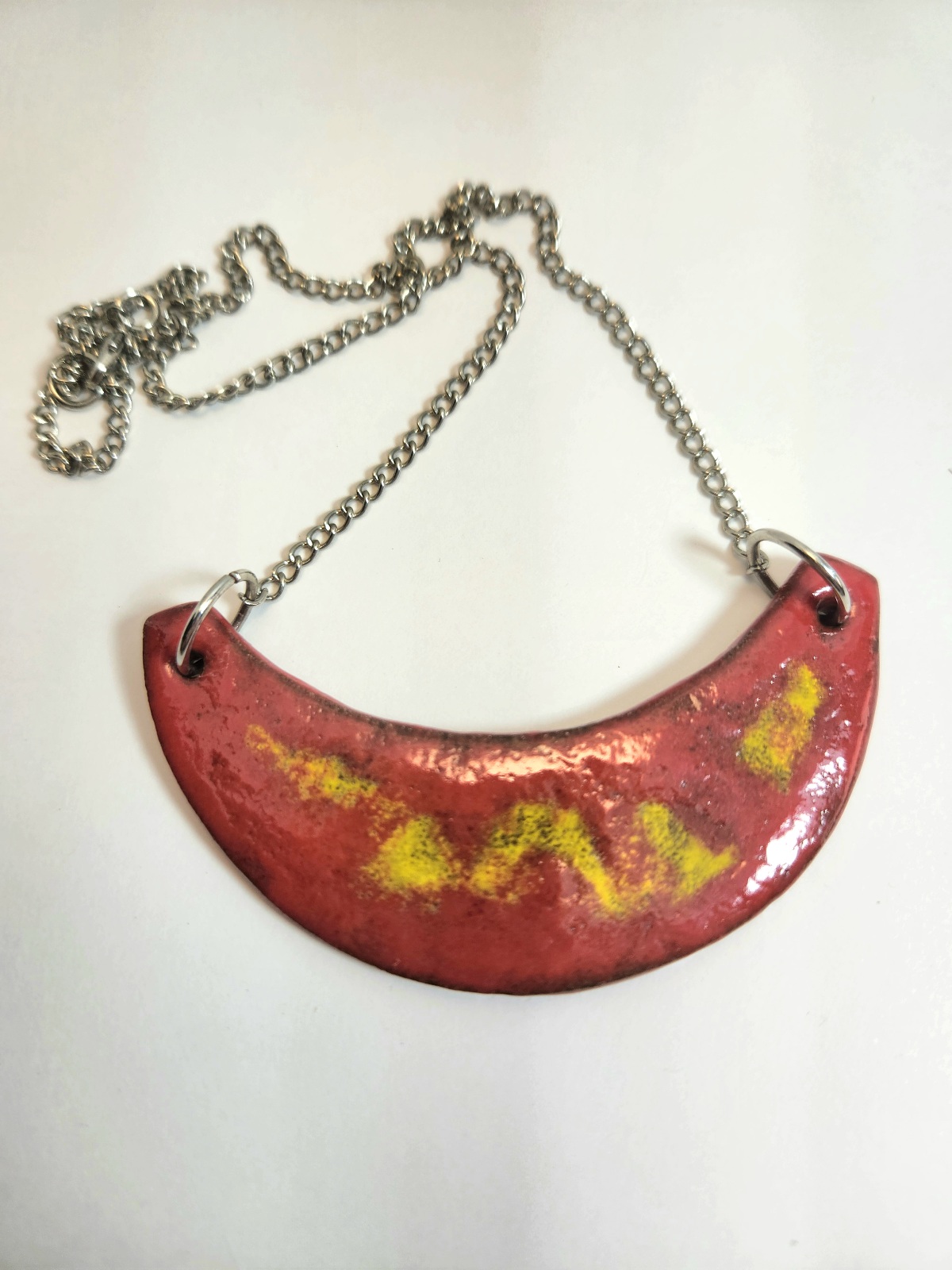 Colar de cerâmica feito à mão e esmaltado com cores únicas que não sairão jamais.