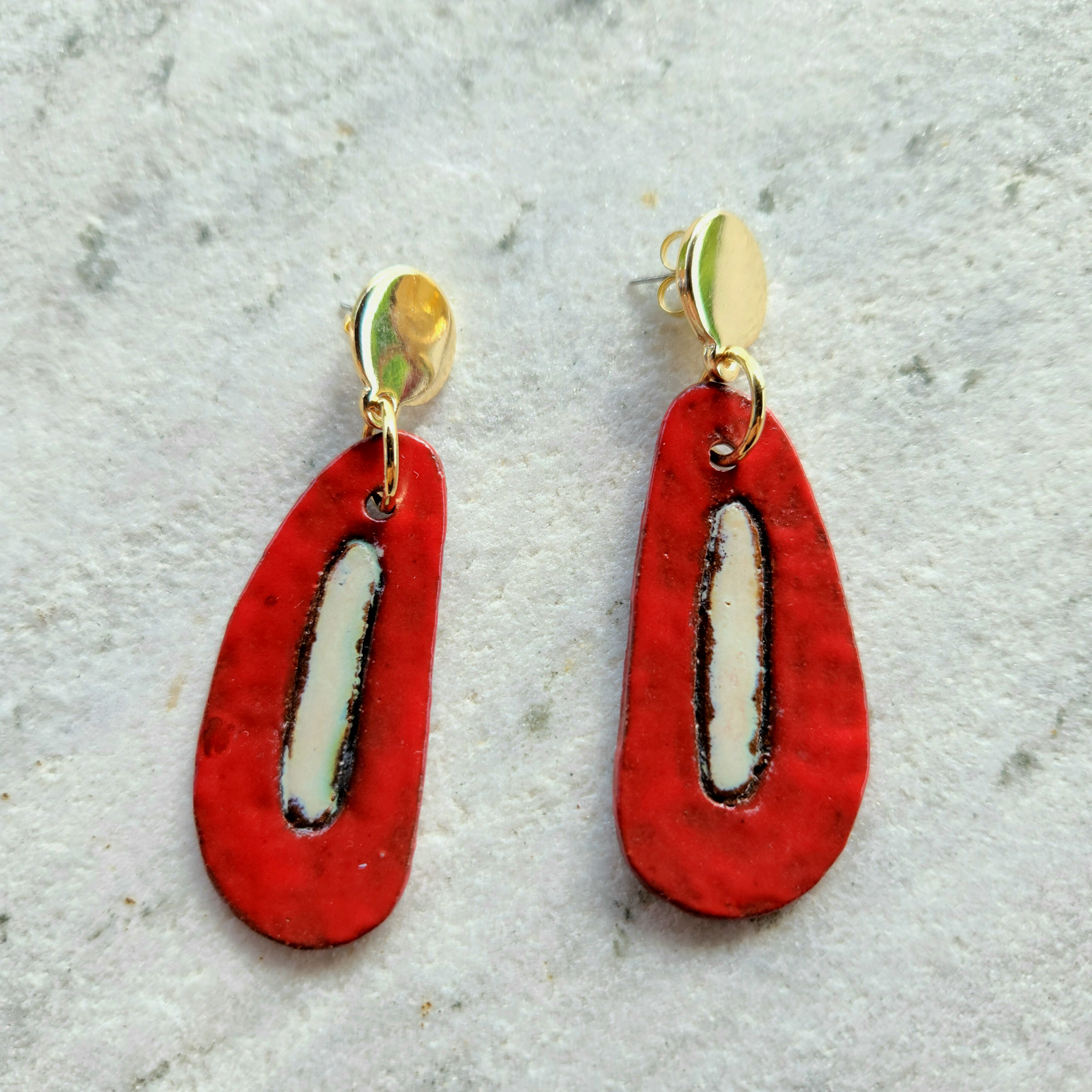 Brincos de cerâmica feitos à mão e esmaltados com cores únicas que não sairão jamais.