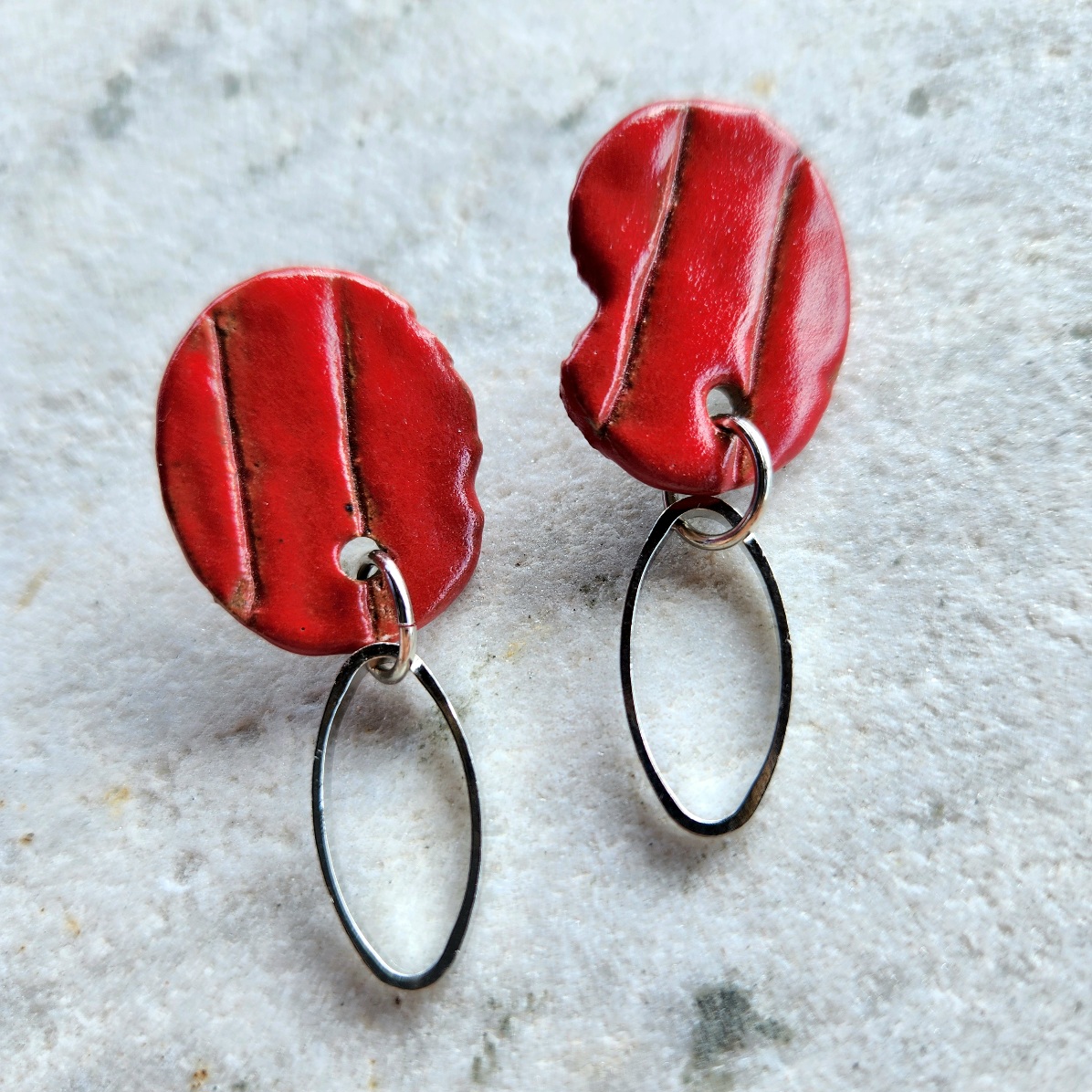 Brincos de cerâmica feitos à mão e esmaltados com cores únicas que não sairão jamais.